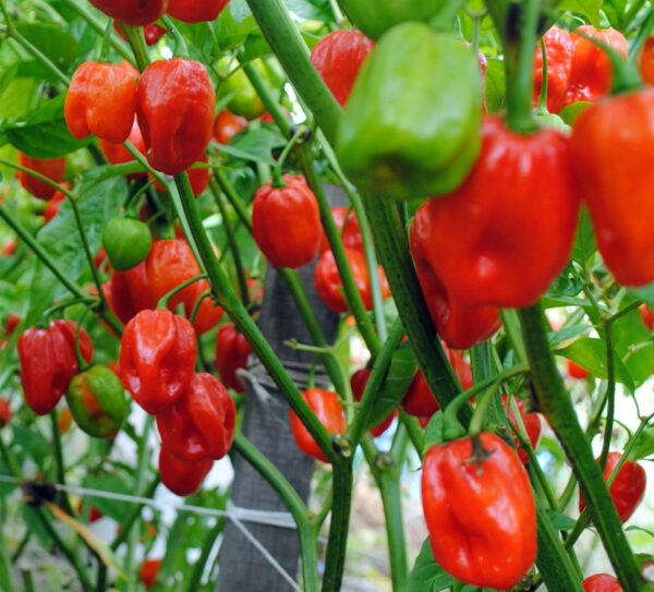 Venezuelan heirloom. Looks like a Habanero, but is sweet, spicy, with only a small amount of heat. Highly aromatic fruits with complex smoky flavor. Thin-walled pendant fruits are 1×2 inches. Plants reach up to 48 inches tall.