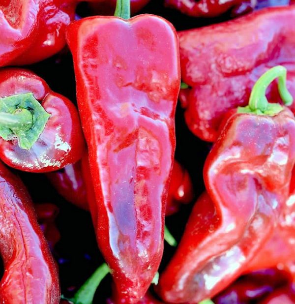 Skip to contentPoblano type chili. Broad shouldered glossy dark green poblano when fresh, red Ancho when for drying.