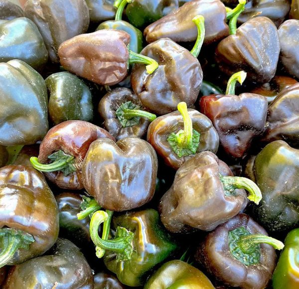 Chocolate brown thin-walled pepper from Oaxaca, Mexico. MILD HEAT (1,500–2,000 Scoville). Ancient heirloom pepper used in Mole Negro. Chocolate-brown color, smoky-sweet flavor, and a mild, fruity taste with notes of dried fruit and tobacco. Often toasted over an open flame to release complex flavors.
