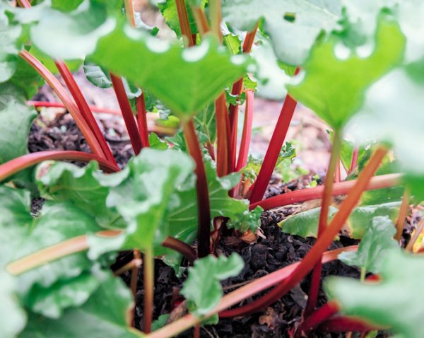 British heirloom.  Fine flavored early crop with possible cuttings in the first year.  Bright red slender stems.