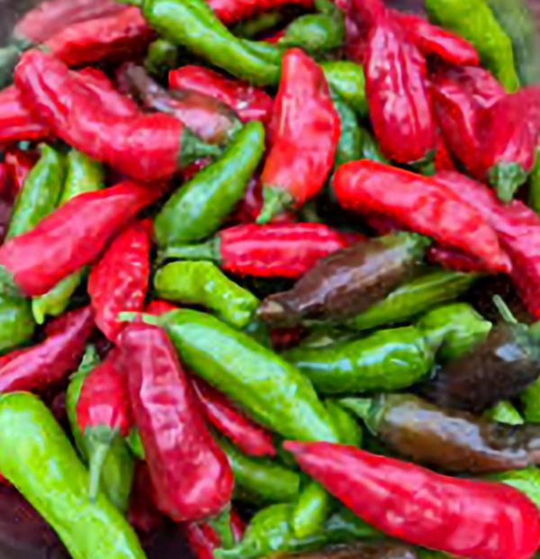 Ripens from green, to golden blush, to red. Habenero heat (300,000–500,000+ Scoville Heat Unit). Used for drying or pickling. Named for the soup / stew showcasing this pepper which originated in West Africa and the Caribbean and sold in Philadelphia during the 19th and 20th century.