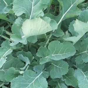 Smooth green leaves. Heirloom brought from Germany. Plant grows 3 to 4 feet wide. Annual Kale that bolts after 120 days, making seed saving easier.