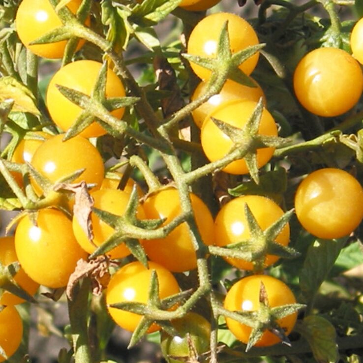 Yellow-cream colored. Marble-sized. Sweet, tropical fruit taste. Bred by Joe Bratka, NJ.